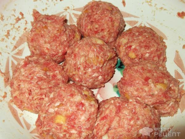 Далі розділяємо фарш, що вийшов, на однакові кульки. З цієї кількості продуктів у мене вийшло 8 кульок.