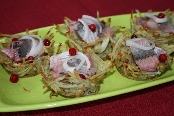 Картопляні тарталетки з оселедцем