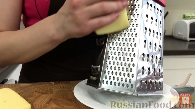У цей час натираємо сир на тертці.