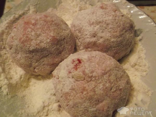 Кожну кульку обвалюємо в борошні. Можна обваляти в панірувальних сухарях, або в манці, хто більше звик користуватися.