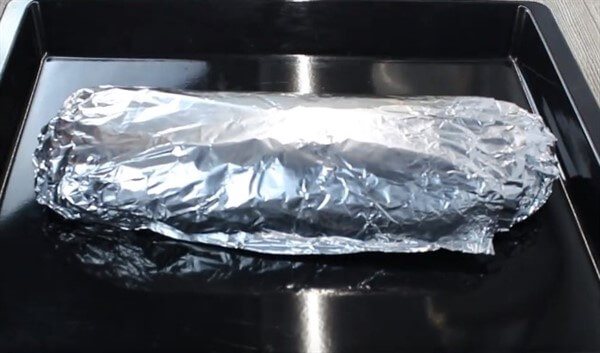 - Формувати рулет можна як у попередніх рецептах, викладаючи на плівку чи фольгу. А можна використовувати для цього форму для кексу. Якщо у вас металева форма, то її потрібно застелити папером для випічки і змастити маслом. Якщо форма силіконова, то її теж треба змастити маслом і присипати панірувальними сухарями.