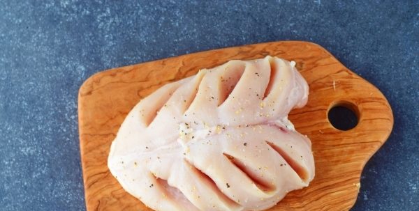 - М’ясо курки потрібно нарізати на невеликі квадратики;