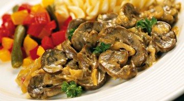 Рецепт приготування яловичих бруньок з грибами до смаку нагадуватиме французький жульєн. Велика кількість білка, необхідного організму і низька калорійність страви дозволяє його включити в дієтичне меню.