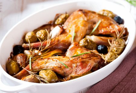 Ножки кролика, рецепты приготовления которых получится отыскать далее в статье, вкусно сочетаются с сухофруктами. Лучше всего использовать в рецепте чернослив.