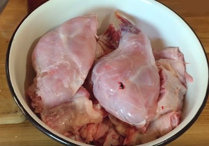- Кролика нужно вымочить в холодной воде, часто ее меняя, на протяжении 3,5-4 ч.