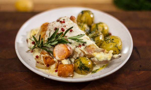 Основой заливки станут сливки, белое сухое вино и ароматные пряности.
