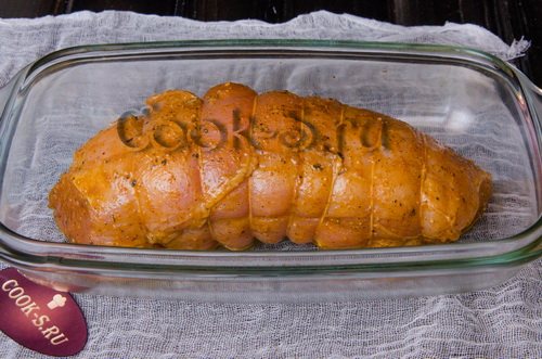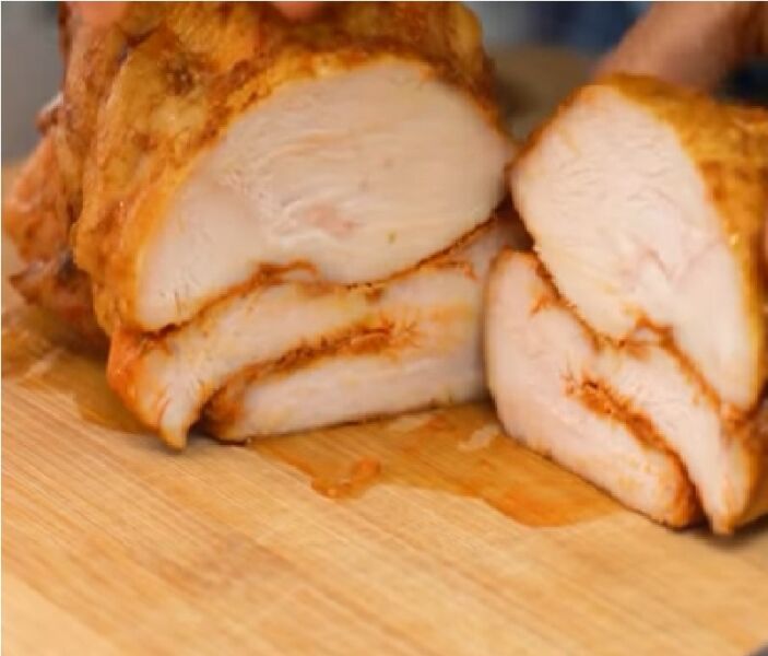 1. Витримування м’яса у розсолі протягом тривалого часу (до доби). Цей етап дозволяє досягти неймовірної соковитості грудки, навіть якщо вона виявиться пісною.