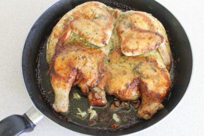 Тем, у кого нет дома специальной посуды, но есть привычная сковорода, подойдет рецепт, который мы опишем ниже. Начать готовить его нужно с подготовки птицы: ее надо выпотрошить, удалить голову и лапки, почистить.