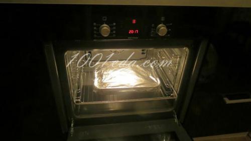Накриваємо фольгою. Ставимо в холодну духову шафу на 1 годину. Температуру робимо 180 градусів.