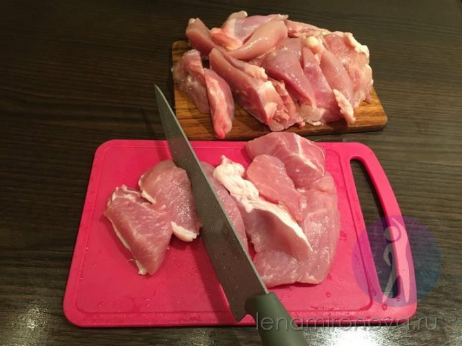Можна використати нежирну яловичину, телятину, кролика. З м’яса обов’язково видаляється сполучна тканина та сухожилля.