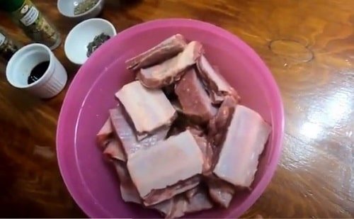 - Усі яловичі реберця потрібно ретельно промити холодною проточною водою, видалити з них гострим ножем плівки та жили, після чого – розрубати на порційні шматки.