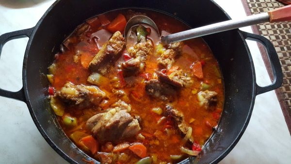 Коли м’ясо на кістках стане м’яким і ніжним, то страву можна подавати до столу.