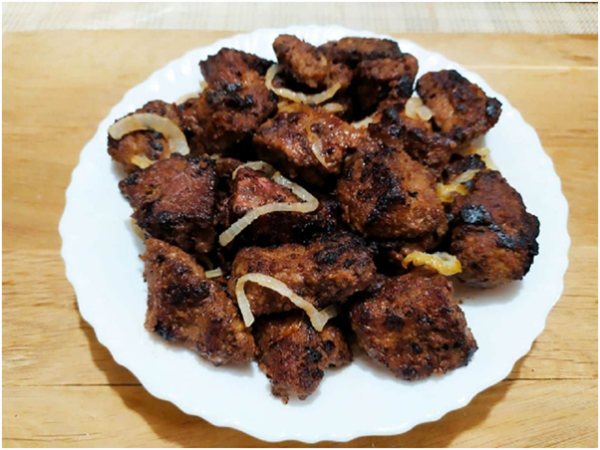 Далі субпродукт викладають на блюдо, посипають цибулею і одразу подають до столу. Деякі господині вважають, що краще готувати печінку на жирі, витопленому із бекону. Але така страва буде менш корисною, хоча й смачнішою.