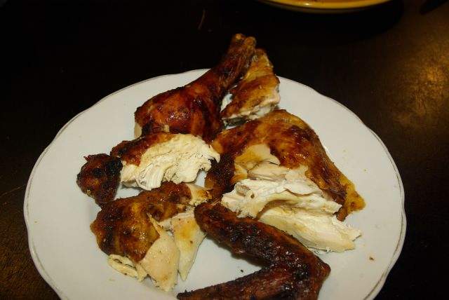 Далі просто. Можна подумати, ви курку ніколи не запікали. Коли вона прийшла в стан напівготовності, дістаємо та обмазуємо сумішшю меду та соєвого. І негайно запихаємо назад. Доводимо до потрібної кондиції, мало не втрачаємо ключовий момент, із запізненням дохрамуємо до духовки, виймаємо, робимо фотографію.