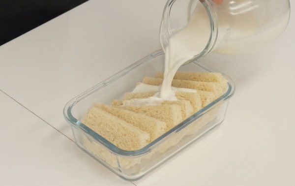 - З скибочок батона потрібно зрізати скоринку. Після – залити їх молоком та дати розмокнути. Далі – трохи віджати.