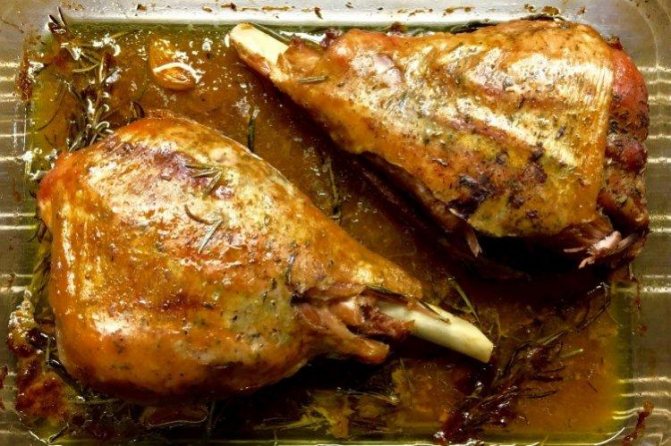 Випікайте в духовці на деко більше однієї години при температурному режимі 170-190 градусів. Готове м’ясо необхідно буде вийняти і укласти скибочками на тарілці, доповнивши зеленню або овочами.