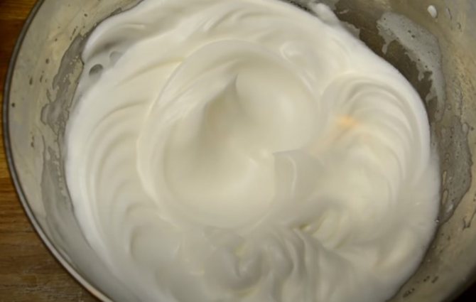 • 7 білків збити до утворення міцної піни, потім додати другу половину цукру та трохи лимонної кислоти.