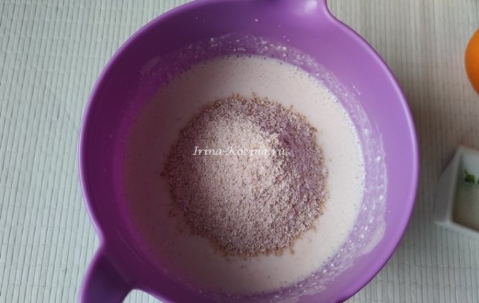• Зробити в центрі сухої суміші поглиблення і влити туди: олію, воду, сік, желатин, що розбухнув, висипати цедру.