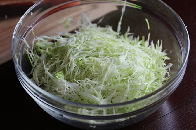 Головне в цьому салаті – більше майонезу правильно нарізати капусту. Різати її треба максимально тонко, поперек листя, приблизно так:
