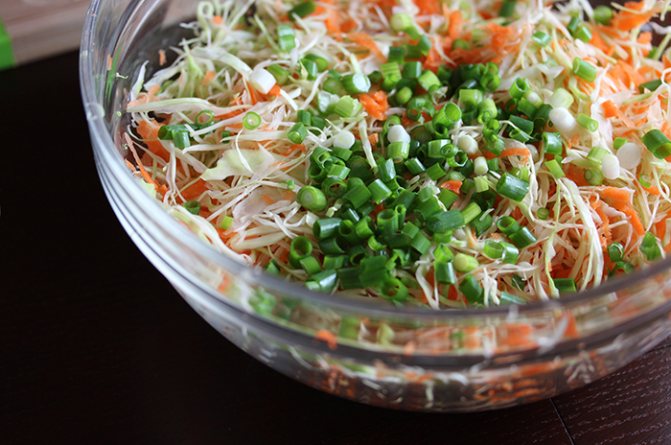 Капуста, бажано молода Морква Зелена цибуля Хороший майонез, краще за домашній Чорний перець