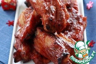 Свинячі реберця в медово-соєвому соусі на подушці цибулі – соковито і смачно