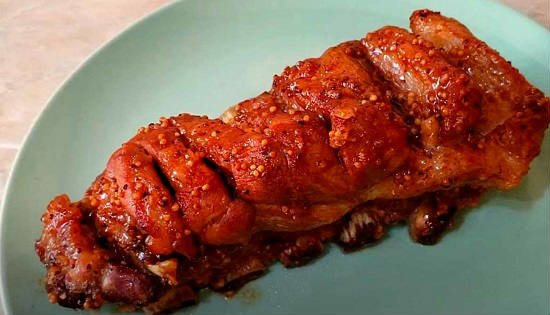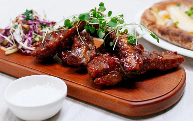 - Ступінь готовності страви легко визначити за допомогою гострої металевої шпажки, проткнувши якої м’ясо, потрібно побачити прозорий сік, червонуватий колір показує, що реберця потрібно готувати далі.