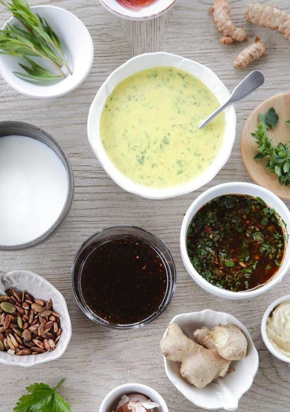 - Маринад для курки можна зробити на основі олії, сметани, майонезу, соєвого соусу, фруктового соку. До нього часто додають часник, куркуму, паприку, розмарин, інші спеції та пряні трави. Для пікантності можна додати гірчицю, червоний перець. Нерідко до складу соусу для маринування курки включають також мед, приготований у ньому птах виходить більш підсмаженим і має приємний солодкуватий присмак.
