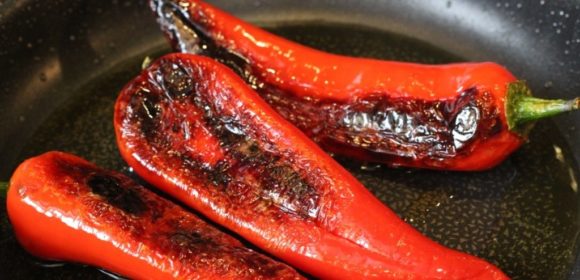 - У сотейник налити рафіновану олію без запаху, підігріти на великому вогні. Покласти туди половину сичуаньського немолотого перцю, що залишилася, і сушені перчики Чилі. Смажити близько 15 секунд, поки не з’явиться ароматний запах, після чого процідити олію за допомогою ситечка.