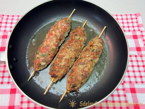 - Для приготування бажано використовувати чавунний або інший посуд з антипригарним покриттям та товстим дном, на яке потрібно налити трохи олії та обсмажити м’ясо на сильному вогні до утворення золотистої кірки.
