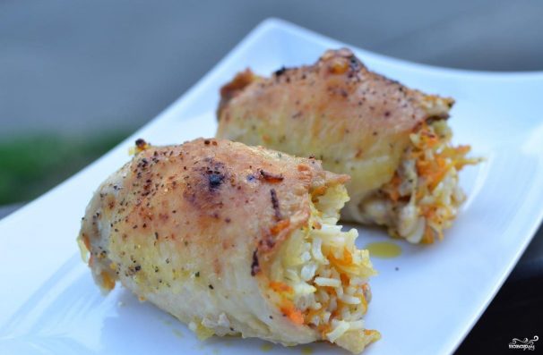 Фаршировані курячі стегна – це дуже оригінальна страва, хоча всі компоненти досить зрозумілі і звичні. Це свого роду голубці, лише капустою виступає куряче м’ясо, а фарширується рисом.