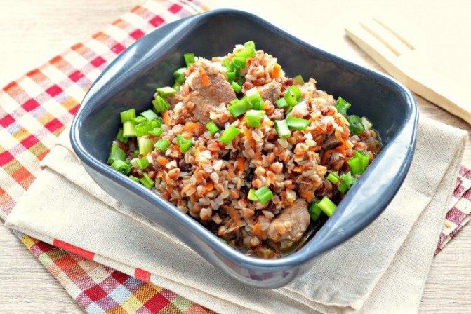 600 г свинини, 250 г гречки, 40 мл олії, 50 г моркви, 30 г цибулі, часник, чилі, спеції.