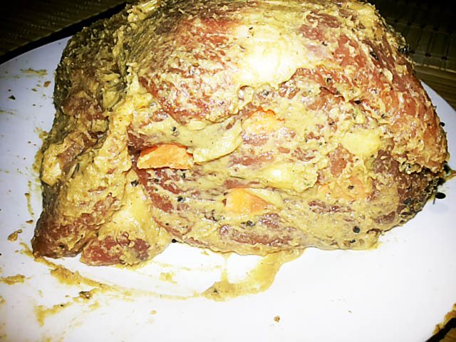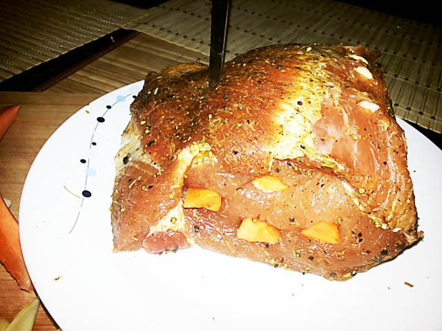Також, як і в попередніх рецептах, м’ясо запікається цілим шматком.