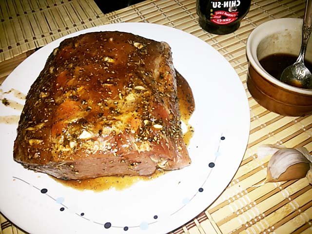 Буженина під маринадом з меду та соєвого соусу, запечена в рукаві