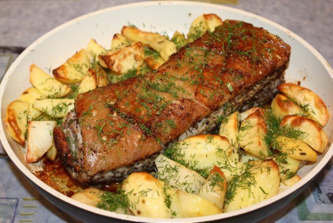 Рулет зі свинячої грудинки у духовці