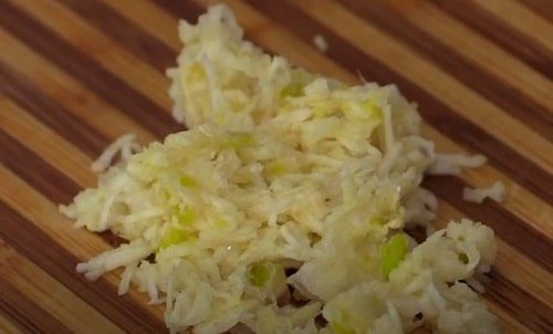 Натріть на дрібній тертці зубчики часнику.