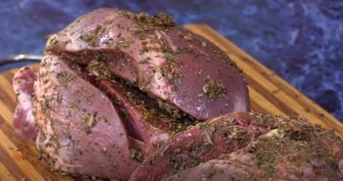 Змішайте в мисці коріандр, сіль, суміш перців. Натріть м’ясо зсередини та зовні.