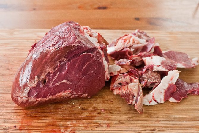 1. Промийте м’ясо, видаліть зайвий жир та судини. Поріжте дрібними кубиками.