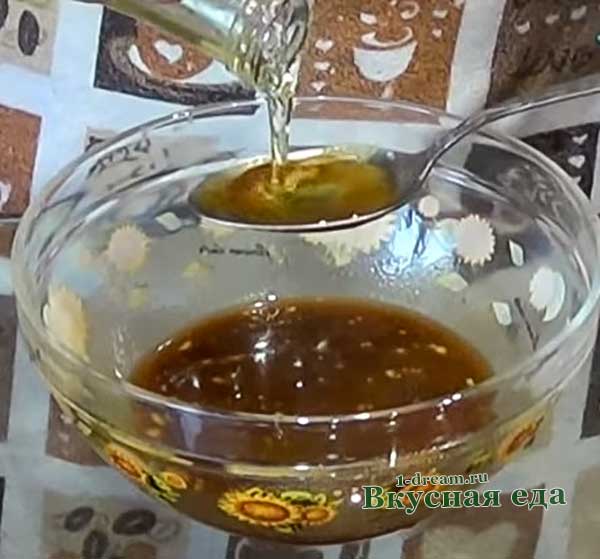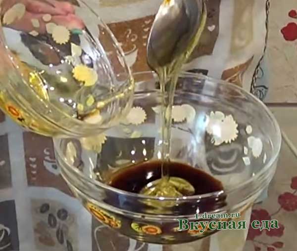 У глибокій чашці змішати соєвий соус, мед, додати|добавляти| перець чорний мелений, гірчицю і столову ложку лимонного соку, і столову ложку рослинної олії – оливкову або соняшникову