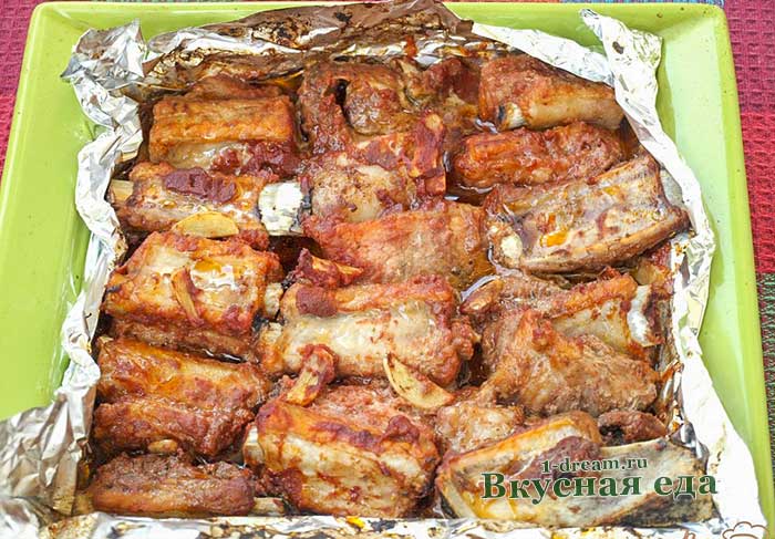 Ось усе! Смачні свинячі реберця запеклися у фользі в духовці і готові до поїдання!