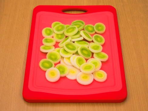 - Промиваємо цибулю порей і ріжемо її тонкими кружальцями.