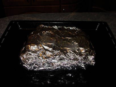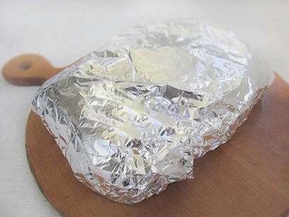 - Оберніть свинину у фольгу. Щоб згорток вийшов більш герметичним, оберніть м’ясо в кілька шарів фольги.