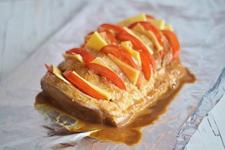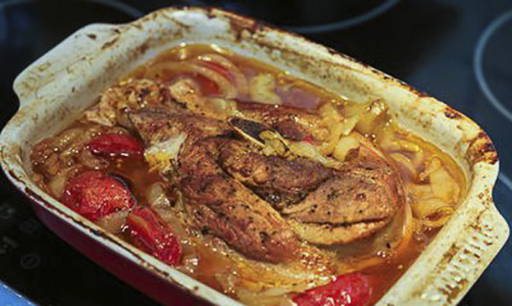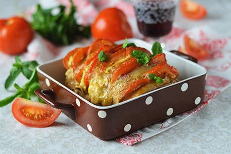 Як смачно запекти шматок свинини з помідорами та сиром?