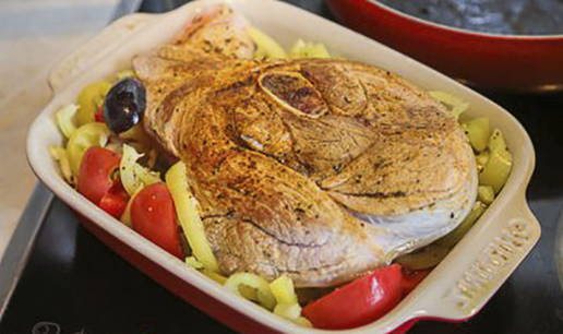 Соковита свинина, запечена одним шматком з овочами у духовці