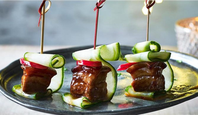 Цей спосіб, як приготувати свинину, теж допускає різні варіанти: хліб можна теж обсмажити, маринад – замінити на будь-який інший. Також можна додати до міні-бутербродів ще овочі.