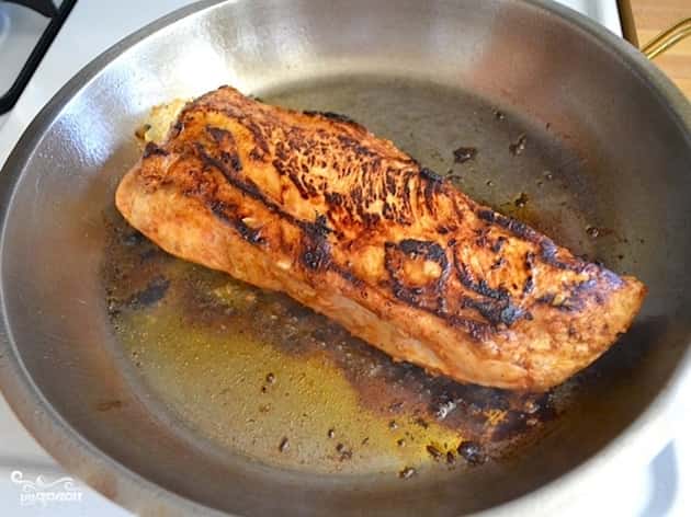 Можна обсмажувати м’якоть із розмарином, тоді смак буде приємним, із трав’яним акцентом. Для цього часник, гілочки розмарину обсмажують до потемніння, потім у цю ж сковороду викладають карбонат. Спочатку його підсмажують з усіх боків, потім додають воду, гасять 35 хвилин. Страва виходить апетитна, ароматна, з тонким присмаком трав.