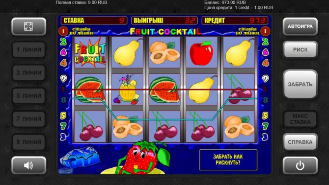 Якщо грати у Fruit Cocktail на гроші в онлайн-казино, варто уважно поставитися до використання автоматичного режиму – у цьому випадку гравець втрачає доступ до ризик-гри.