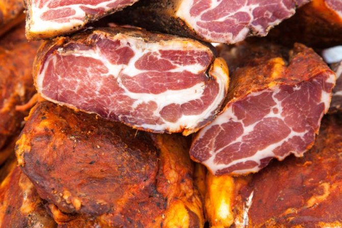 - Шматки слід вибирати із тонким шаром жиру. Товстий жир гірше просолюється. До того ж він не дасть солі проникнути до кістки, що може призвести до ризику псування продукту;