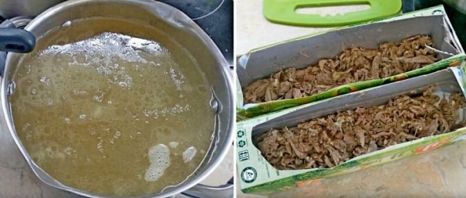 10.Залийте процідженим бульйоном заготовки. Коли вони охолонуть, заберіть їх у холодильник до повного застигання.