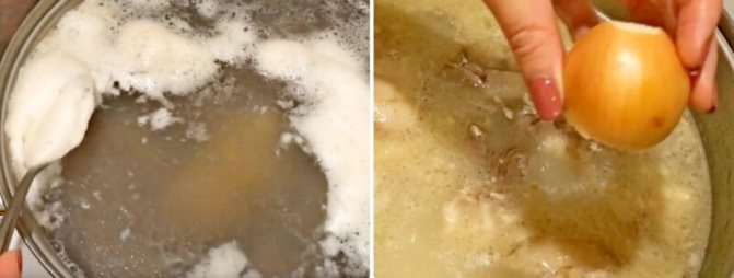 2.Поставте на вогонь і доведіть до кипіння. Під час нагрівання спливатиме піна (білок, що згорнувся), її потрібно обов’язково прибирати. Так що не відволікайтеся та приділіть увагу цьому процесу.