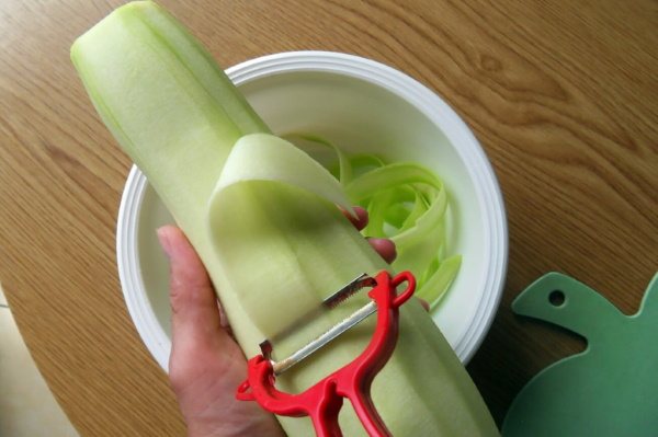 5. Охолоджену масу розкочують за допомогою качалки, після чого напівпрозорий шар тіста нарізають тоненькими смужками.